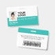Personalice fácilmente esta placa de identificación de empleado horizontal personalizada con foto, código de barras o código QR y logotipo comercial. Un diseño empresarial simple en colores azul turquesa claro y blanco totalmente personalizable en tamaños delanteros y traseros, fuentes básicas y modernas sans-serif y un aspecto profesional y claro. Estas etiquetas de identificación de seguridad estándar están disponibles con cordón, clip metálico o retráctil. Puede personalizar sus tarjetas de identificación eligiendo cualquier color de fondo y estilo de fuente con el editor de Diseño Gráfico haciendo clic en personalizar más. Sin pedido mínimo.