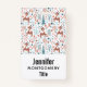 Una etiqueta de nombre con un adorable patrón de Navidades. Cerveza de invierno con cordones que cuelgan alrededor de un bosque de árboles y hierbas.
