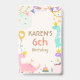 ¡Celebra el sexto cumpleaños de Karen con esta encantadora invitación temática de princesa de dinosaurios! Esta encantadora tarjeta presenta un fondo pastel adornado con adorables dinosaurios de dibujos animados que llevan coronas, lo que añade un toque real a la diversión prehistórica. La tarjeta está decorada con banderines coloridos, globos y elementos festivos, lo que la hace perfecta para una celebración mágica y llena de diversión. Invita a amigos y familiares a unirse a la alegría y hacer de este día especial uno inolvidable.