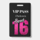 Insígnia de Cumpleaños Elegante Personalizado Negro Sweet 16 VIP