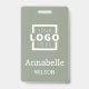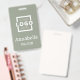 This design captures maximum elegance with a completely unified, solid sage green background that looks incredibly chic. The striking contrast of the white logo and text makes your branding pop, providing high visibility in a beautifully cohesive manner. By emphasizing the company emblem and employee name within this rich, single-color palette, this design offers a sophisticated, monochromatic choice for premium identification.
