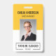 Easily personalize this yellow custom employee name and photo badge with your own company logo and qr code or bar code. Available with different background colors and attachments. No minimum order quantity.