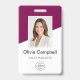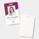 This vibrant vertical ID badge design features a bold, diagonal slash of rich deep magenta and pure white for a truly modern edge. The layout elegantly centers the employee's photo where the colors meet, ensuring maximum attention. This stylish design clearly presents the name and title below, with your company logo subtly anchored at the base, creating a contemporary and high-impact professional look.