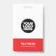 Easily personalize this Custom Administrative professional Name Badge without photo, with Scan Bar Code and large business logo. A simple business design in eyecatching red and white colors fully customizable in front and back sizes, sans-serif basic and modern fonts and a professional and clear look, perfect for small business employee, boss, guests. These business id badges supplies are avaiable with lanyard, metal clip or with retractable. No minimum order, but save money and enjoy Zazzle discounts by multiple orders!