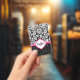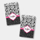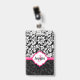 Tarjeta De Identificación Damasco blanco y rosado monogramado negro
