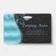 Tarjeta De Identificación Damasco negro de Swirl azul metálico