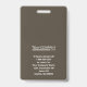 La insignia de entrada en la instalación de color marrón oscuro y blanco con texto vertical en negrita es ideal para la limpieza específica del departamento. Carga fácilmente varios logotipos y una foto de un empleado. Esto se puede colgar en un patio que también tenga una tarjeta de clave de la empresa. Este distintivo de empresa es versátil para los patios de las compañías de café oscuro, beige o taupe. Perfecto para instalaciones de ingeniería, salud o aplicación de la ley donde la identificación del personal es importante. Perfecto para edificios gubernamentales donde los empleados tienen permisos diferentes.