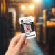 Sencilla y moderna placa de personal médico vertical de personalizable con logotipo personalizado, código de barras, foto, nombre y dirección. Creado para centros médicos, hospitales e instalaciones de salud.