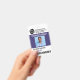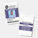 Sencilla y moderna placa de personal médico vertical de personalizable con logotipo personalizado, código de barras, foto, nombre y dirección. Creado para centros médicos, hospitales e instalaciones de salud. Colores principales de esta plantilla profesional: azul púrpura.