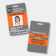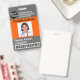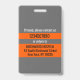 Simple y moderna insignia de personal médico vertical personalizable con logotipo personalizado, código de barras, foto, nombre y dirección. Creado para centro médico, hospital y establecimiento de salud. Colores principales de esta plantilla profesional: naranja y gris.