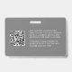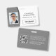 Tarjeta de identificación profesional minimalista y moderna para empleados de empresa con diseño gris. Personalice con el logotipo de su empresa y la foto del empleado. Cambie el color o déjelo como está, y agregue su URL para el código QR y edite la información adicional en el reverso si es necesario. Por favor, explore otras opciones de insignias para empleados o empresas en la Colección de Tarjetas de Identificación Personalizadas para Empleados.