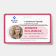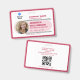 Tarjeta de identificación elegante y minimalista roja y rosa con código QR para pequeñas empresas, insignia de identificación de empleado con foto. Personalice fácilmente el diseño para hacer que sus insignias sean totalmente únicas. El texto personalizado adicional se encuentra en la parte posterior para información de devolución u otros detalles. Código QR personalizable en la parte posterior.