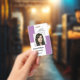 Personalice fácilmente esta moderna placa de identificación de empleado con sus datos personalizados.