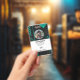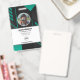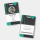 Tarjeta de identificación de empleado de la empresa con plantillas creadas para usted. El fondo es un abstracto moderno en colores negro y verde.