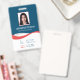 Un diseño empresarial de marina moderna que destaca los logotipos de su oficina y el nombre del empleado. Puede agregar un código de barras de escaneo en el reverso. También puede cambiar el color del fondo según sea necesario. ¡Edición simple!