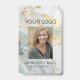 Tarjeta de identificación de empleado de mármol, moderna, dorada, azul rosa, salón, Logo. Edite su producto en unos minutos añadiendo sus datos. Puede cambiar la fuente/color/posición mediante "personalización adicional".