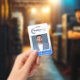 Insignia de identificación de foto moderna con patrón geométrico azul y código de barras. Cuenta con espacio para el nombre del empleado, el título, el logotipo de la empresa, el número de identificación, la fecha de caducidad y las instrucciones de devolución. Una solución limpia y profesional para la identificación de oficinas, tecnología o empresas. Fácilmente personalizado para equipos corporativos o remotos.
