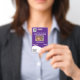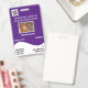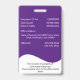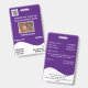Un diseño sencillo pero llamativo en blanco y violeta con plantillas para tu logo; una foto de su empleado; datos relativos a su empresa y a la fecha de empleo, grupo sanguíneo y fecha de caducidad de la tarjeta. Personalice la plantilla para adaptarla a sus necesidades y cambie el color de fondo a cualquiera de sus opciones personales. Este diseño se presenta en una posición vertical y horizontal. Seleccione la opción vertical de la colección en la parte inferior de esta página.