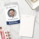 Tarjetas de identificación personalizadas modernas con foto para empleados, resaltan el color del cargo, personaliza el nombre y la foto del empleado, así como el logotipo y el nombre de la empresa. En la parte posterior, puede editar más información como el nombre de la empresa, la dirección y el número de teléfono, y también agregar o eliminar el código de barras según lo desee.