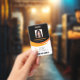 Un moderno diseño de negocios de naranja negro que destaca los logotipos de su oficina y el nombre del empleado. Puede agregar un código de barra de exploración en la parte posterior. También puede cambiar el color del fondo según sea necesario. ¡Edición simple!