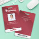 Elegante y funcional, esta placa personalizada de identificación de enfermera borgoña incluye espacio para una foto, nombre, título e identificación del personal. La parte posterior incluye campos adicionales para instrucciones de devolución, fechas de emisión y un área de código de barras. Ideal para enfermeras, médicos y profesionales de la salud que buscan un look profesional y refinado.