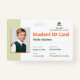 Esta moderna plantilla de tarjeta de identificación de estudiante tiene un diseño limpio con secciones para la foto del estudiante, nombre, fecha de nacimiento, número de identificación del estudiante, número de teléfono y dirección. En la parte delantera se muestra el nombre de la escuela y la foto del estudiante, mientras que en la inversa se describen los términos y condiciones, las restricciones de uso y los avisos de privacidad.