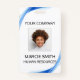 El diseño de las olas azules en la esquina inferior derecha y en la esquina superior izquierda, sencillo pero sin florituras, aporta un toque de color a un pequeño estilo. Agregue el nombre de su empresa, la foto del empleado y la posición para completar la parte delantera. Si necesita un código de barras, agréguelo a la parte posterior. No necesita un código de barras, quite el que está actualmente presente.