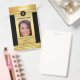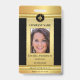Tarjeta de identificación de fotos de diseño negro y dorado de moda con espacio para la foto y el logo de su personalizado. En la parte posterior puede agregar un código de barras personalizado o código QR y textos adicionales o eliminar las plantillas. También puede copiar y pegar el diseño y las fotos de la parte delantera a la trasera si lo desea.