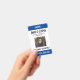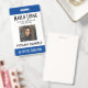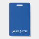 Personalizar las placas de identificación de la foto de su empleado. Todos los detalles se pueden modificar o eliminar. Foto, nombre, empresa, departamento/división/título. Recortar texto negro sobre fondo blanco con bordes azules de zafiro en la parte superior e inferior de la placa. Cada detalle se puede personalizar, incluyendo colores y fuentes. Punto para información adicional sobre el reverso de la insignia, si es necesario. Si no, se puede eliminar.