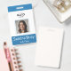 Insignia vertical azul personalizado con foto y nombre del empleado. Personalízalo con un número de identificación de empleado, rol, título, ubicación u otros detalles importantes. Añada el logotipo de su empresa en la parte superior para un toque profesional. La parte posterior de la insignia incluye un campo de texto personalizado para obtener información u otros detalles clave. Este diseño facilita la personalización, asegurando que cada insignia sea única y se ajuste perfectamente a las necesidades de su empresa.