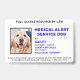 Perro del Servicio de Alerta Médica - Identifique fácilmente a su perro como un perro de servicio, mientras mantiene a su perro enfocado y recorta las distracciones mientras trabaja con una de estas tarjetas de identificación de perro de servicio k9. Aunque no es necesario, una tarjeta de identificación de perro de servicio le da a usted y a su perro de servicio tranquilidad y facilidad de viaje sin molestias ni preguntas cuando busca acceso público. DERECHOS RESERVADOS © 2020 Judy Burrows, Black Dog Art - Todos los derechos reservados. Tarjeta de identificación de foto de perro del servicio de alerta médica ADA