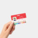 Una insignia horizontal de foto de profesor en rojo y blanco con un doodle de lápices de colores en la parte inferior . Personalízalo con la foto del profesor , nombre , asignatura o grado enseñado , las fechas para las que la insignia es válida , el nombre de la escuela y su dirección . Incluso hay un espacio en blanco en la parte posterior para una firma o un pegatina de barras de código. © ArianeC Ilustraciones-Todos los derechos reservados