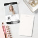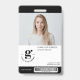 Cree un aspecto elegante y profesional con esta placa de identificación de foto de empleado en blanco y negro. Personalizar con el logotipo de su empresa, nombre, título, número de identificación, foto y código de barras. Atrás incluye una sección de dirección de retorno. Perfecto para equipos corporativos, personal y personal de oficina.