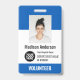 Nombre de voluntario personalizado, logotipo de la empresa, foto, código de barras o carteles de identificación Qr con clip o Lanyard con colores vivos azul claro y blanco.