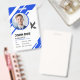 Crea tus propias etiquetas y distintivos de nombre de empleado personalizados usando una plantilla vertical moderna que es fácil de agregar tu propia foto, logotipo de la compañía y otra información importante a. El diseño elegante de estas insignias de nombre profesional está dirigido a gerentes, contables y otros empleados corporativos, pero la información y los colores pueden cambiarse sin esfuerzo para reflejar su marca o negocio corporativo. El elemento de diseño de fondo es un gráfico SVG, que le permite alterar los 4 elegantes colores de onda además de las barras de color en el frente y en el reverso.