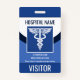 Personalice este distintivo profesional de visita vertical al médico con su logotipo, el nombre y la dirección de su hospital o centro de salud. Personalizar con un código de barras en la parte trasera.