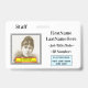 Este elegante y elegante diseño de insignias del personal incluye detalles editables, como una foto de retrato, un logotipo de empresa/empresa, un nombre de miembro del personal y un rol/título. Una insignia como esta podría utilizarse tal vez para indicar que una persona es un funcionario conocido y autorizado en una empresa o lugar de trabajo. [~Z0000450]