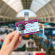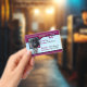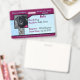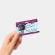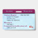 Tarjeta de perro de servicio azul/púrpura con información veterinaria