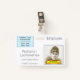 Este diseño contemporáneo y moderno de la placa de identificación del personal incluye información sobre personalizables como una foto retratada, un logotipo de empresa/empresa, un nombre de miembro del personal y un nombre de trabajo. Una insignia como esta podría ser usada para mostrar que alguien en una empresa o lugar de trabajo es un miembro autorizado e identificado del personal. [~Z0000450]