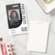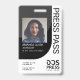 Insígnia de pasaporte de prensa fotográfica moderna y trendy. Nuestro diseño presenta un diseño curvo negro oscuro moderno y trendy. Personalice con foto, nombre, logotipo, fecha de vencimiento y fecha válida, así como número de identificación de empleado opcional. La parte posterior presenta un diseño curvo de tres colores trendy (los colores se pueden cambiar para adaptarse a su marca).