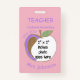 Una tarjeta de identificación rosa de doble cara para los profesores con una manzana. EN FRENTE: añadir el título (posición: profesor , profesor asistente , bibliotecario , director , etc) . Añada el nombre de la escuela y el año escolar esta insignia será válida. reemplace la imagen con una foto de 2" x 2" del empleado de la escuela. Debajo de la manzana , agregue el nombre . Rellene la parte trasera con el texto adicional que necesite. El espacio también es blanco y está previsto para una firma o un código de barras.