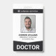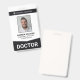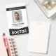 Una placa de identificación moderna para hospitales, clínicas e instalaciones médicas. La plantilla de identificación del personal médico incluye una foto de identificación de su empleado, el nombre y la profesión de los empleados, así como un número de identificación. El nombre del grupo establecido como "médico" se muestra de forma destacada en la parte inferior con una flecha como el diseño señalándolo. La parte posterior de la tarjeta de identificación del personal del hospital se deja en blanco intencionalmente y está abierta para que usted añada más información sobre el empleado y su hospital o clínica. Color: negro