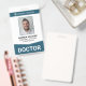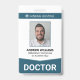 Una placa de identificación moderna para hospitales, clínicas e instalaciones médicas. La plantilla de identificación del personal médico incluye una foto de identificación de su empleado, el nombre y la profesión de los empleados, así como un número de identificación. El nombre del grupo establecido como "médica" se muestra de forma destacada en la parte inferior con una flecha como el diseño señalándolo. La parte posterior de la tarjeta de identificación del personal del hospital se deja en blanco intencionalmente y está abierta para que usted añada más información sobre el empleado y su hospital o clínica. Color: Marina