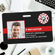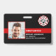 Identifíquese fácilmente a usted y a su bombero en la estación con esta bandera de línea roja delgada personalizada con foto, logotipo, código de barras, insignias de tarjeta de identificación de bombero. Personalice con la foto del bombero, nombre, número de identificación y departamento de bomberos. Personalice la parte posterior con el logotipo de su estación de bomberos y código de barras, o cualquier otra información. Esta insignia de tarjeta de identificación de bombero de línea roja delgada es perfecta para todos los bomberos, bomberos voluntarios, bomberos, jefe, capitán y teniente. DERECHOS DE AUTOR © 2020 Judy Burrows, Black Dog Art - Todos los derechos reservados. Departamento de Bomberos Insignia de identificación de bombero con foto personalizada