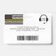 Identifíquese fácilmente a usted y a su despachador en la estación con estas insignias de identificación personalizadas de línea dorada delgada con foto, logotipo, código de barras, tarjeta de identificación de despachador 911. Personalice con la foto del despachador, nombre, número de identificación y departamento de policía o departamento de bomberos. Personalice la parte posterior con el logotipo y código de barras de su despachador o departamento, o cualquier otra información. Esta insignia de identificación de despachador de línea dorada delgada es perfecta para todos los despachadores 911, despachadores de policía, departamentos de policía y departamentos de bomberos. DERECHOS DE AUTOR © 2020 Judy Burrows, Black Dog Art - Todos los derechos reservados. Insignia de línea dorada delgada con código de barras y foto personalizada para despachador