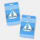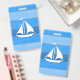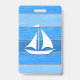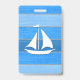 Diseño de temática náutica con decoración de velero sobre fondo azul rayado y gris de madera. Tenga en cuenta que esto no está hecho de madera, es una impresión gráfica de madera.