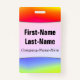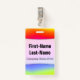 Las características del este diseño de la insignia una diversión, arco iris-como el modelo multicolor de la pendiente que ofrece varios tonos de colores tienen gusto de amarillo, del naranja, del rojo, del rosa, de la púrpura, del azul y del verde. También ofrece un nombre de encargo en texto coloreado negro dentro de un área ligera blanca. Hay también un mensaje de encargo bajo el nombre ese podría mostrar la información tal como un nombre del papel del trabajo, o una profesión, o un nombre del negocio/de compañía. [~Z0000176]