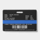 Identifíquese fácilmente a usted y a su policía en el departamento de policía con esta fina bandera azul personalizado foto personalizada, logo, código de barras, insignias de identificación de la policía. Personaliza con foto de oficial de policía, nombre, número de placa, detalles y departamento de policía. Personalizar con el logo de su estación de policía, sello de estado y código de barras. Esta delgada tarjeta de identificación de la policía de la línea azul es perfecta para todos los oficiales de policía, agentes del orden, sargento, jefe, capitán y teniente. DERECHOS RESERVADOS © 2020 Judy Burrows, Black Dog Art - Todos los derechos reservados. Insignia de identificación de funcionario profesional fotográfico del Departamento de Policía