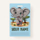 Tarjeta De Identificación El bebé elefante salta feliz en la sabana africana