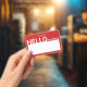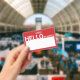 Tarjeta De Identificación El hola moderno en blanco mi nombre es rojo